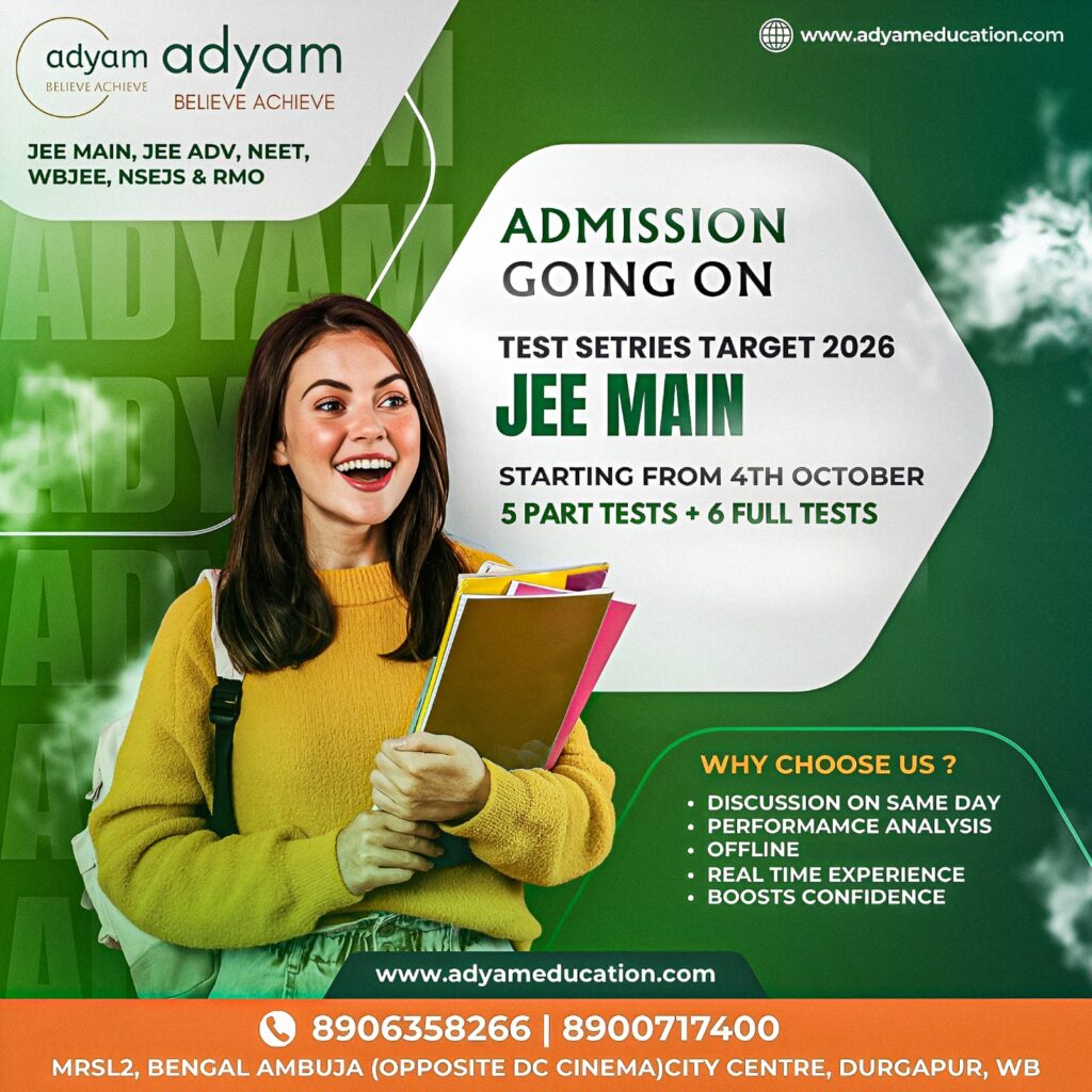 Boost your JEE prep with Adyam’s Test Series, starting 4th October.